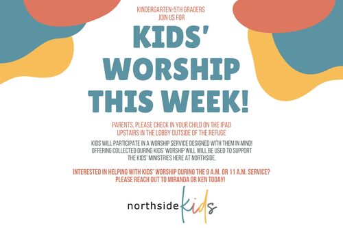 *Kids' Worship during the 11 a.m. service will remain the same-kids dismissed right before the sermon begins!
