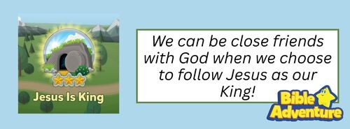People sin and make lots of wrong choices. That hurts our friendship with God. Jesus never made any wrong choices, but He chose to die on the cross to take away our sin and wrong choices. Jesus came back to life after He died. Now we can be close friends with God when we choose to follow Jesus as our King!