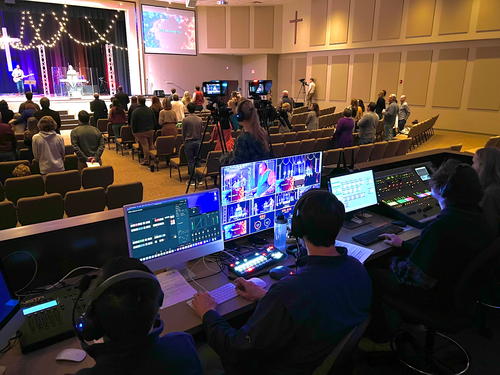 - Switch between camera angles and slides during the service