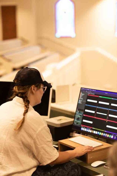 - This is one of the easiest ways to jump into the tech team! You’ll click through slides for worship lyrics, sermon notes, and videos during the service. If you can use a computer and follow along with what's happening on stage, you're good to go.
